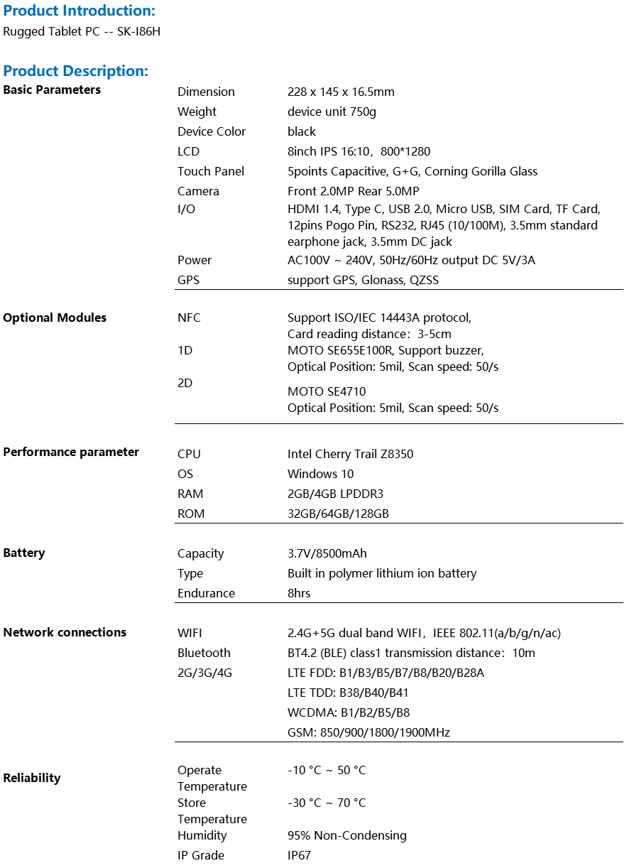 Rugged Tablet PC -- SK-I86H